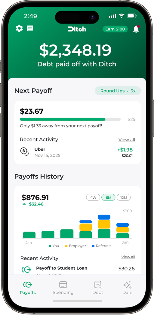 You can try Ditch for free for 7 days, then pay a monthly fee. Most of our users save 10x their subscription cost on interest. Plus paying for the product means you're not the product.